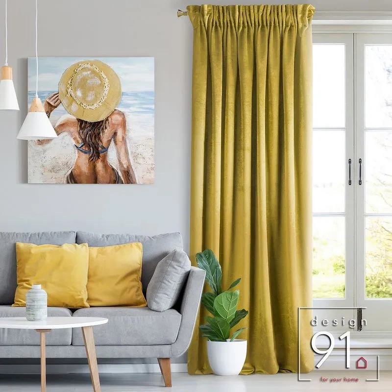 Тейлър кадифена завеса готова на лента Design91 горчица