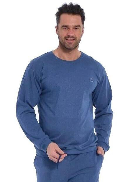 Мъжка пижама от висококачествен памук. Тениска с дълъг ръкав, полукръгло деколте.