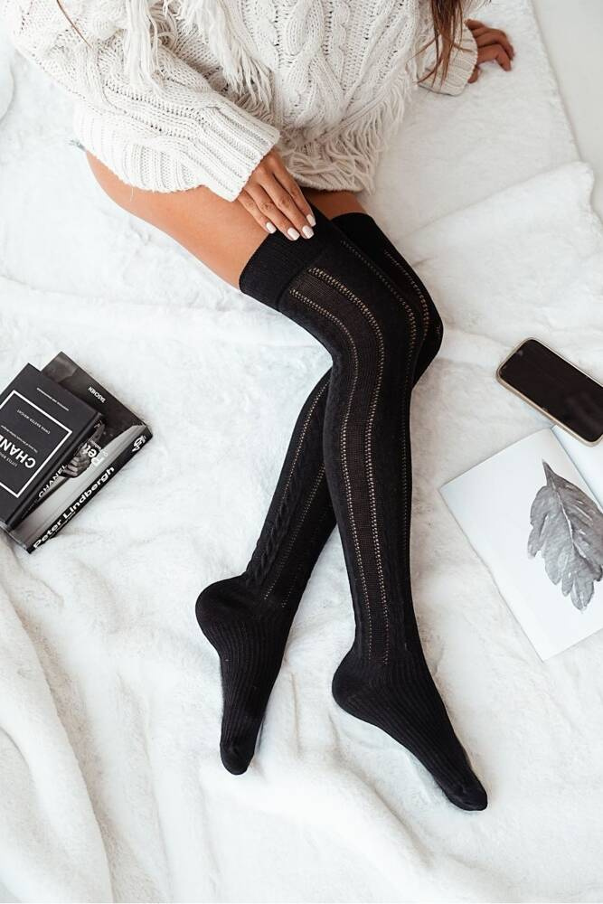 0347.001 Дамски чорапи над коляното Milena Openwork Braid - черни
