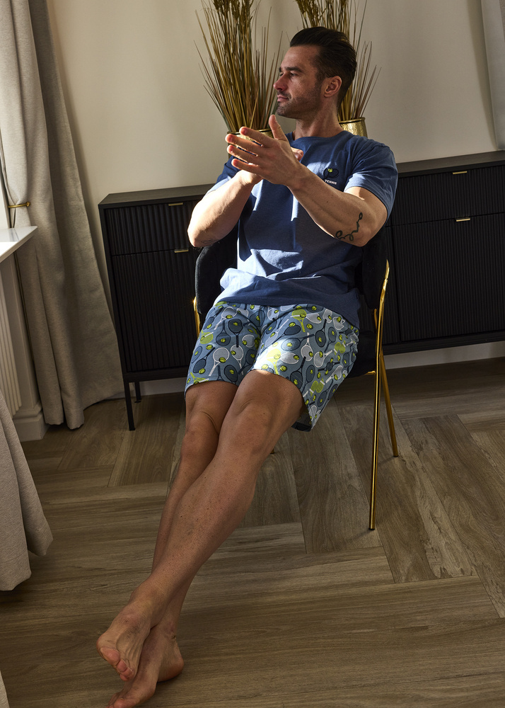 Мъжка пижама от висококачествен памук. Тениска с къс ръкав, полукръгло деколте.