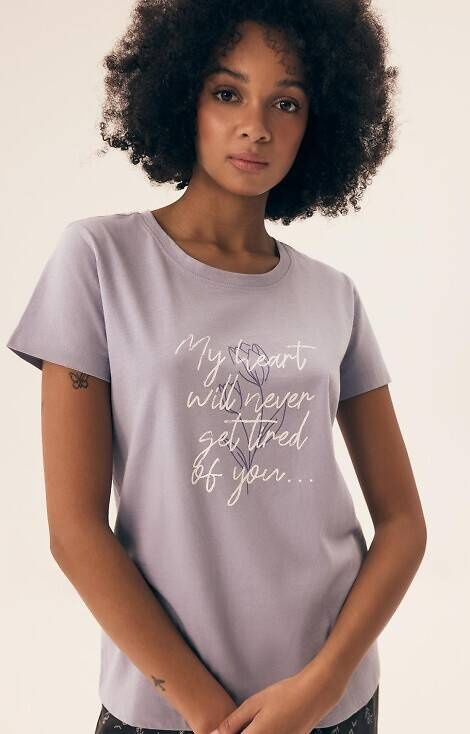 Дамска пижама с къс ръкав. Свободна тениска с щампа.