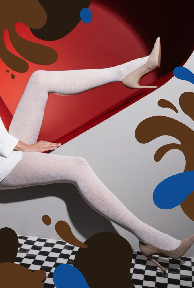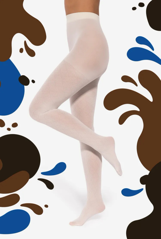 Дамски чорапогащник 40 den с дъх на шоколад, изработен от прежда ликра. Модел, вдъхновен от класическия шоколад: бял и черен. Тънка мрежа с фина геометрична шарка. Придават лек вид на краката. Без маркирана част на пръстите, размер 2-4, снабден с малък клин. В размер 5, голям клин. Подсилена, маркирана част на бикините.