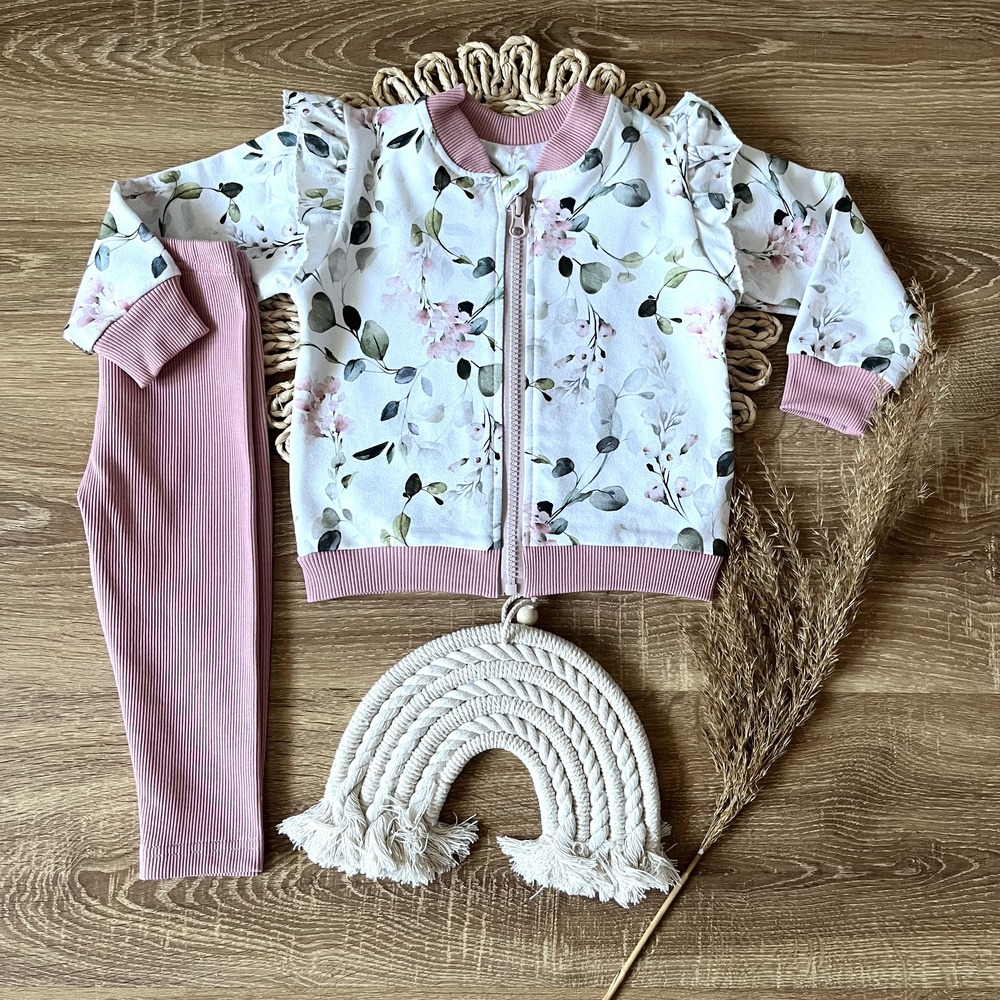 Bluzy oraz legginsy połączeniu z kolorowymi T-shirtami lub body dziecięcymi stworzą śliczny komplet wyjściowy.