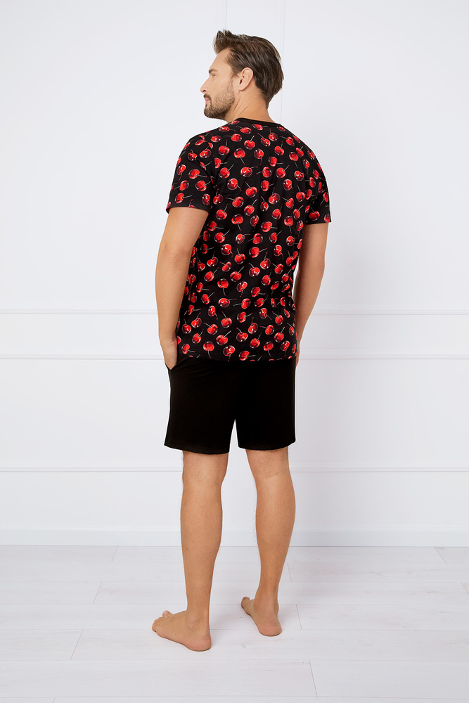 Cherry Мъжка пижама с къс ръкав, къси панталони Италианска мода - принт/черно