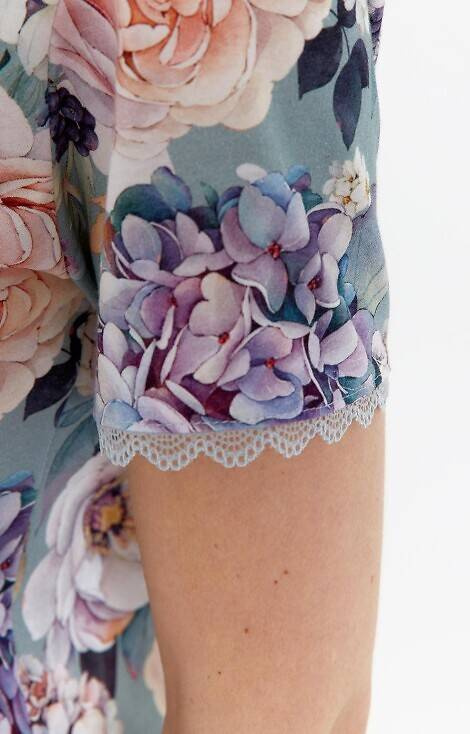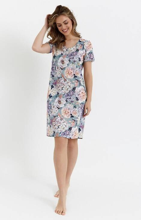 Дамска риза с къс ръкав от висококачествен памук на цветя. Изключително приятен за кожата.