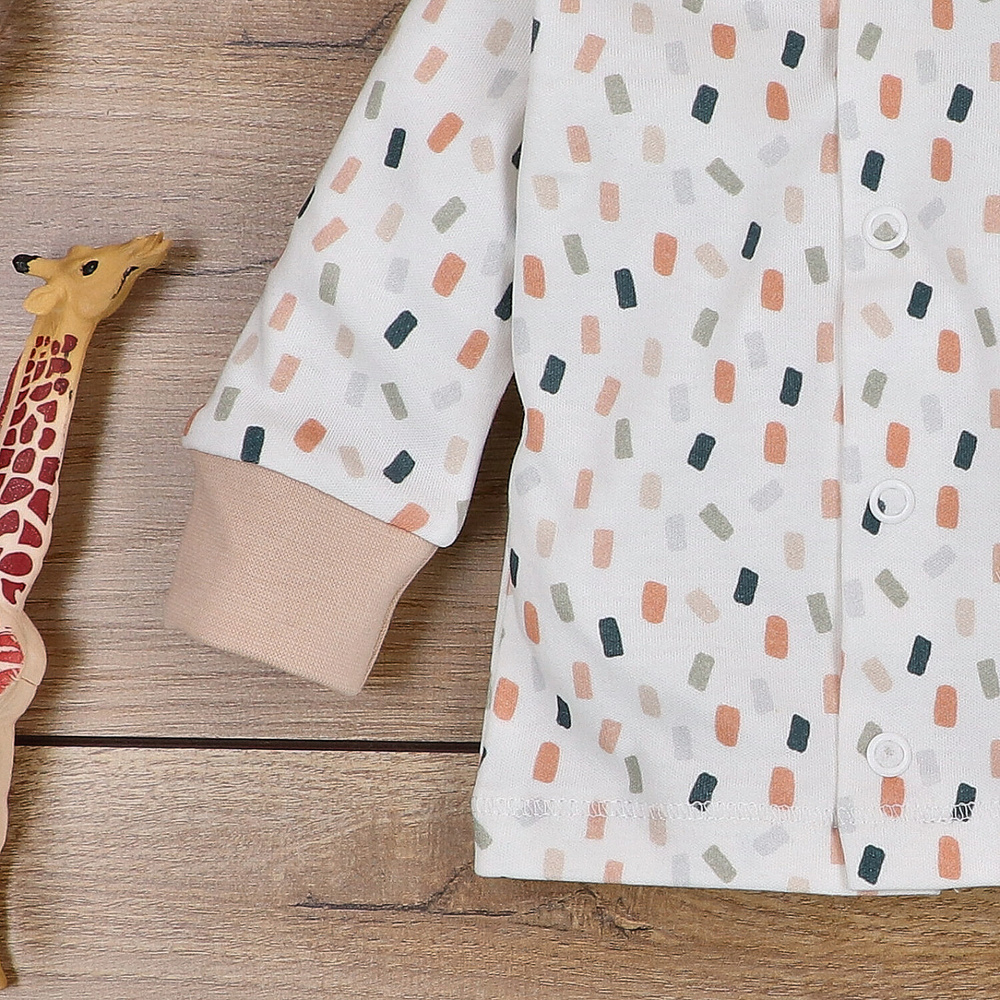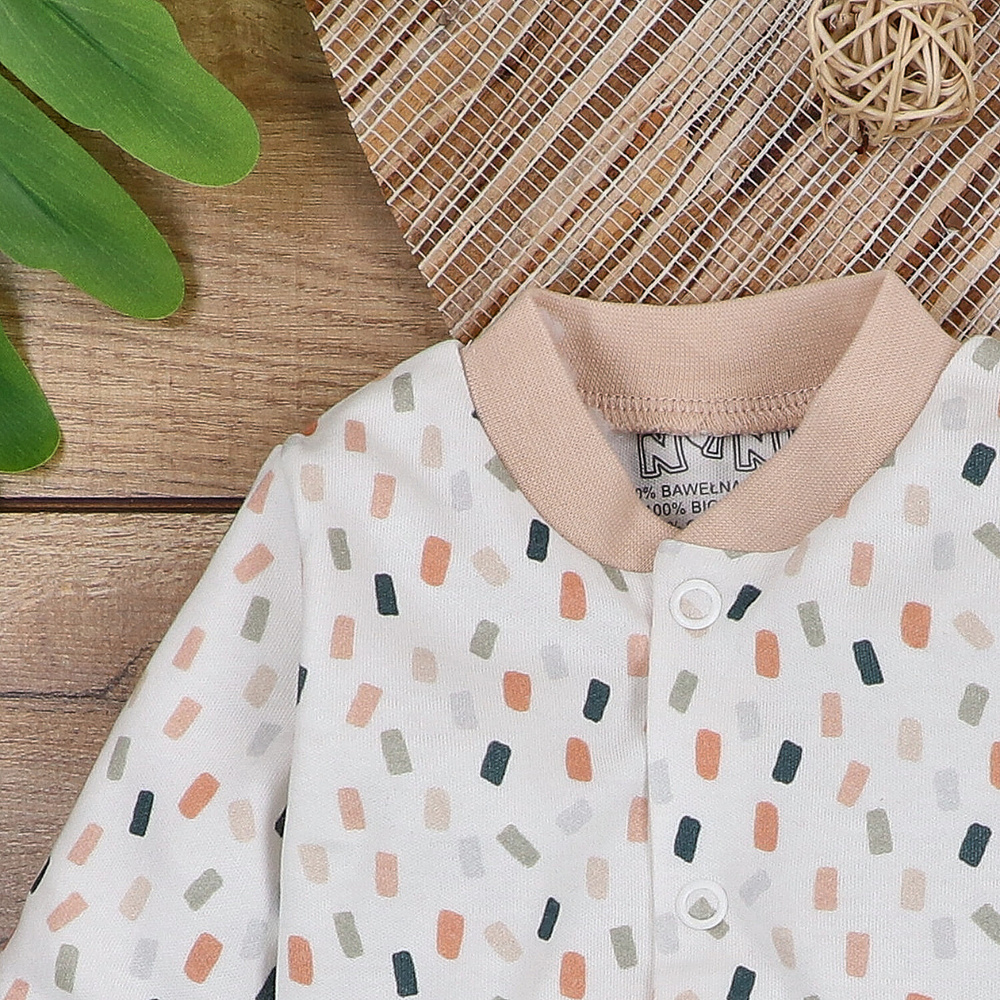 Бебешки кафтан от мек и приятен на допир органичен памук. Кройката позволява пълно разкопчаване, което прави дрехата функционална и удобна. Закопчалки без съдържание на никел и деликатни, меки кантове са допълнителни предимства на дрехата. Марката NINI е една от малкото в Полша, която има международен сертификат OEKO-TEX STANDARD 100, който потвърждава, че нейните продукти отговарят на най-високите стандарти за безопасност за бебета. Купувайки дрехите на НИНИ, вие се грижите за околната среда и безопасността и здравето на вашите деца.
