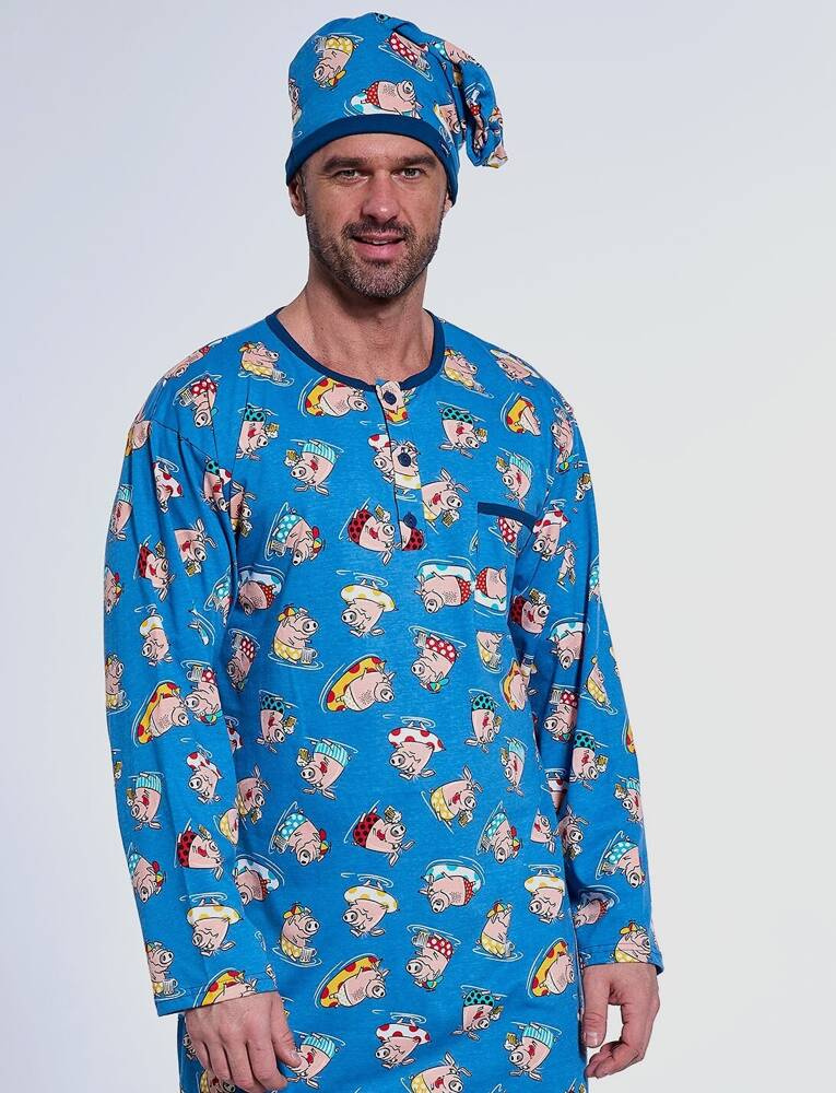 Мъжка нощница с дълъг ръкав. Изработена от висококачествен памук с декоративна цветна щампа