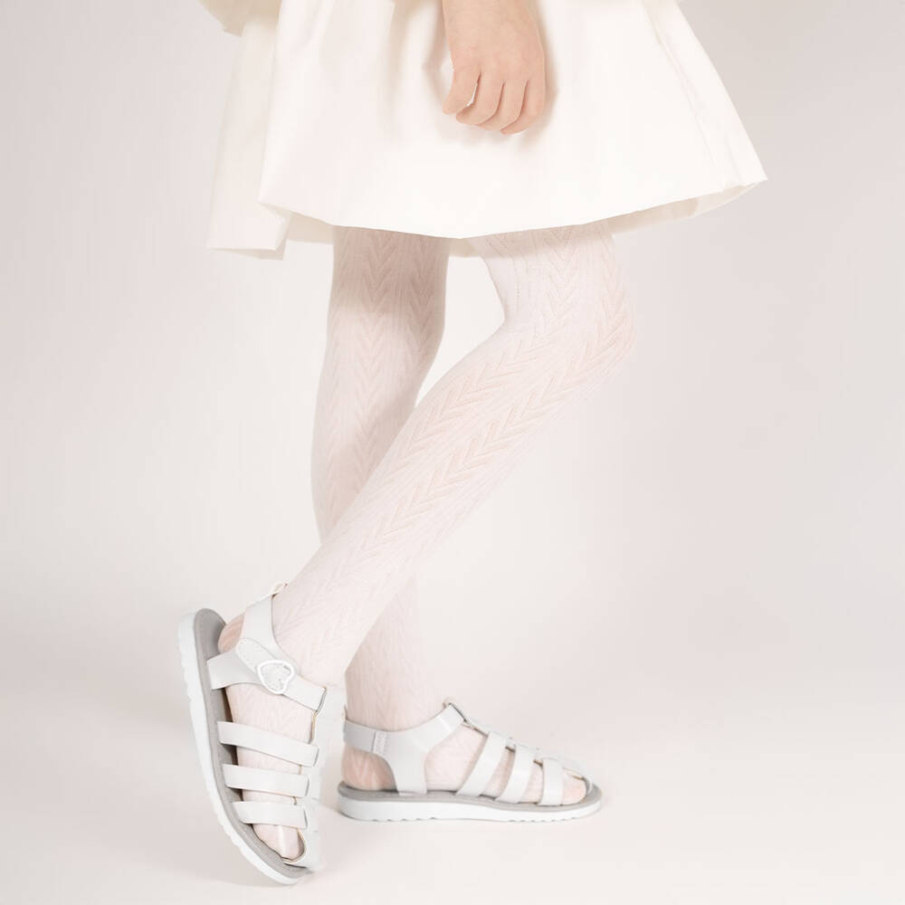 Жакардов чорапогащник за момиче. Гъвкавата материя, от която са изработени е приятна на допир и не дразни чувствителната детска кожа. Моделът показва мотив на рибена кост. Удобни са и не се изплъзват. Благодарение на своя модерен и вечен дизайн, те допълват много стилове.