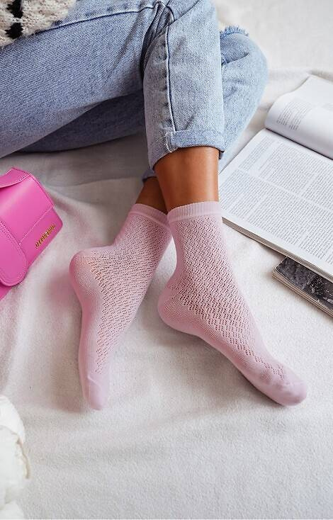 0989-006 Дамски ажурни чорапи Милена - пудрово розови
