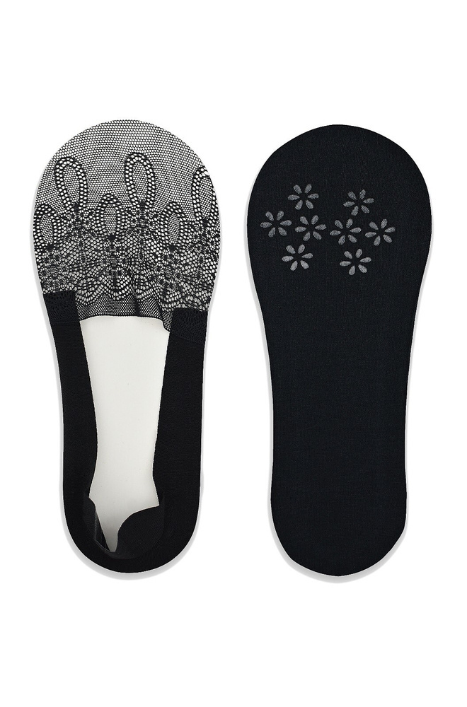 Дантелени балетки. Връзка със силиконова лента, предпазваща от изплъзване. Гладко памучно ходило със силиконови цветя. Прилепват идеално към крака. Предпазват от протриване.