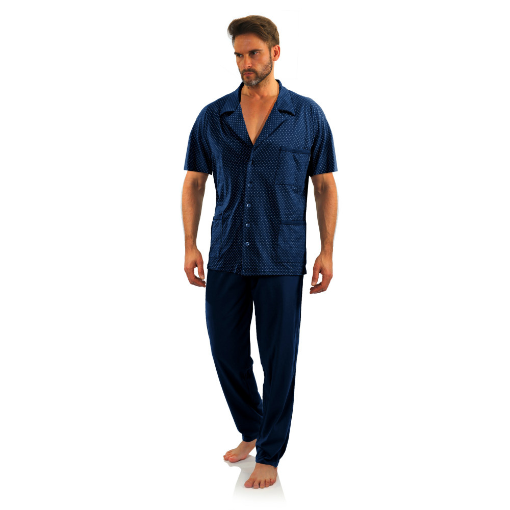 Памучна, изключително удобна мъжка пижама с класическа кройка и модерни, приглушени цветове.
