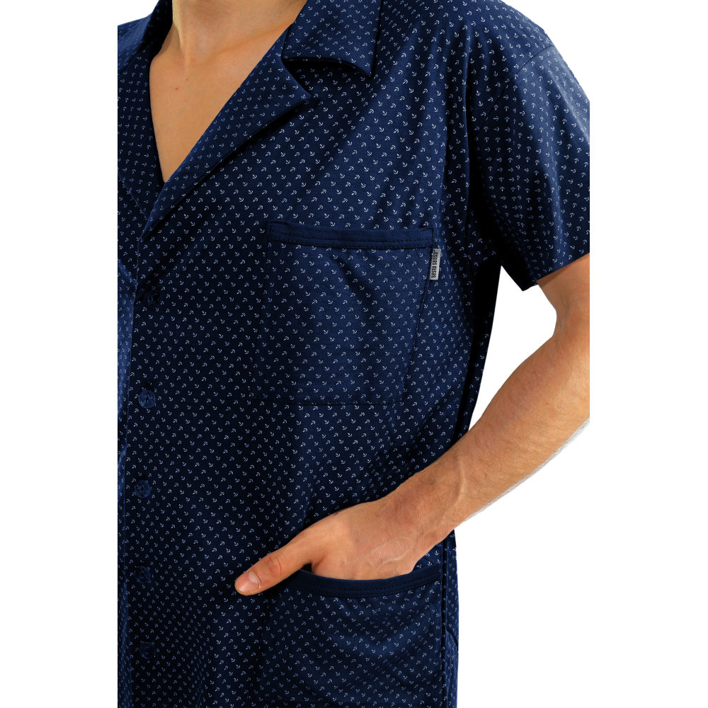 Мъжка пижама с цип с къс ръкав Sesto Senso - тъмносини котви