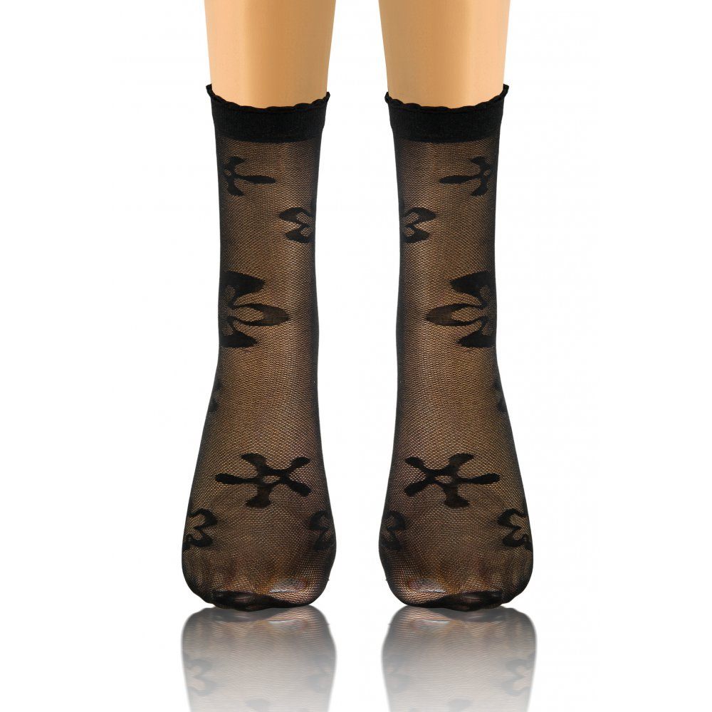 Изработена от деликатен, гъвкав материал. Прилепват идеално към крака, осигурявайки комфорт през целия ден. Прозрачният дизайн с фина шарка им придава уникален характер, а липсата на подсилвания на пръстите ги прави идеални за съчетаване с отворени обувки. Маншетът без натиск гарантира удобно носене без усещане за натиск.