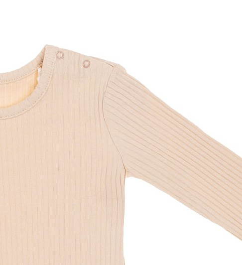 Боди с дълъг ръкав за момиче, изработено от 100% памук. Материята притежава сертификат Oeko-Tex Standard 100 Trustworthy Textiles. Продуктът се закопчава на рамото и в чатала с копчета без никел, осигуряващи комфорт при обличане.