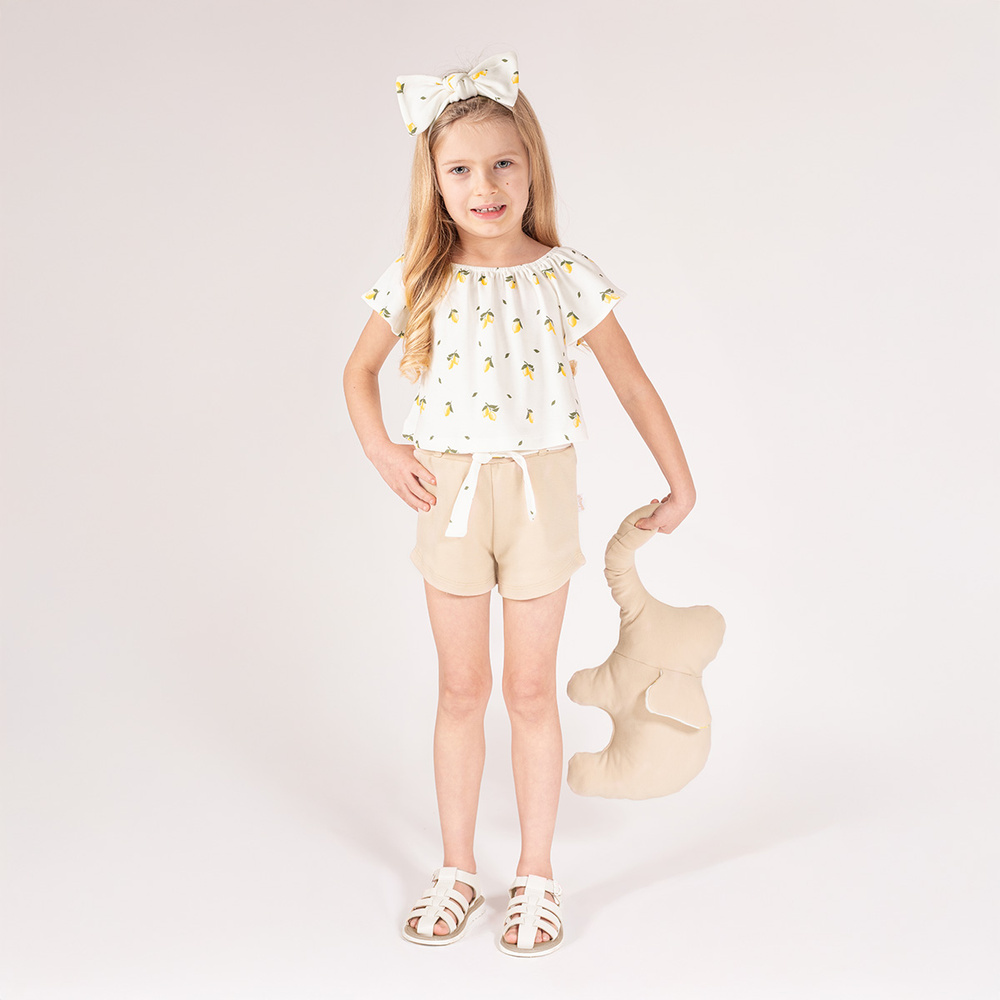 Запитване за продуктКъси къси панталонки за момичета, изработени от памук с десен на хрътка зъбка. Имат ластик на талията, който не притиска корема.