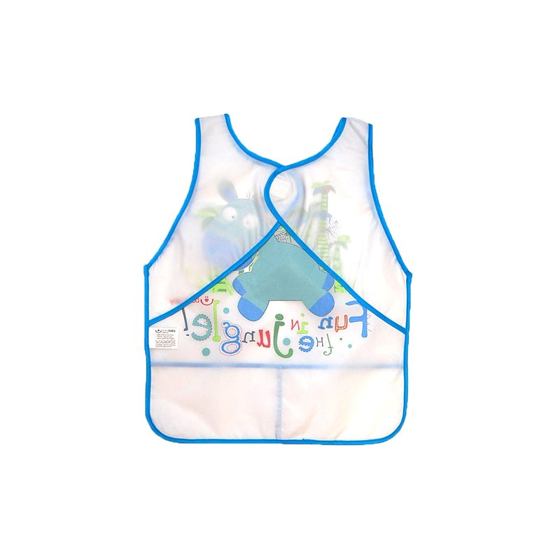 Лигавникът е изработен от PEVA фолио, което предотвратява попиването на мръсотия в дрехите. Безопасен състав - лигавник без BPA. Закопчава се с велкро, има джоб, разделен на две части.