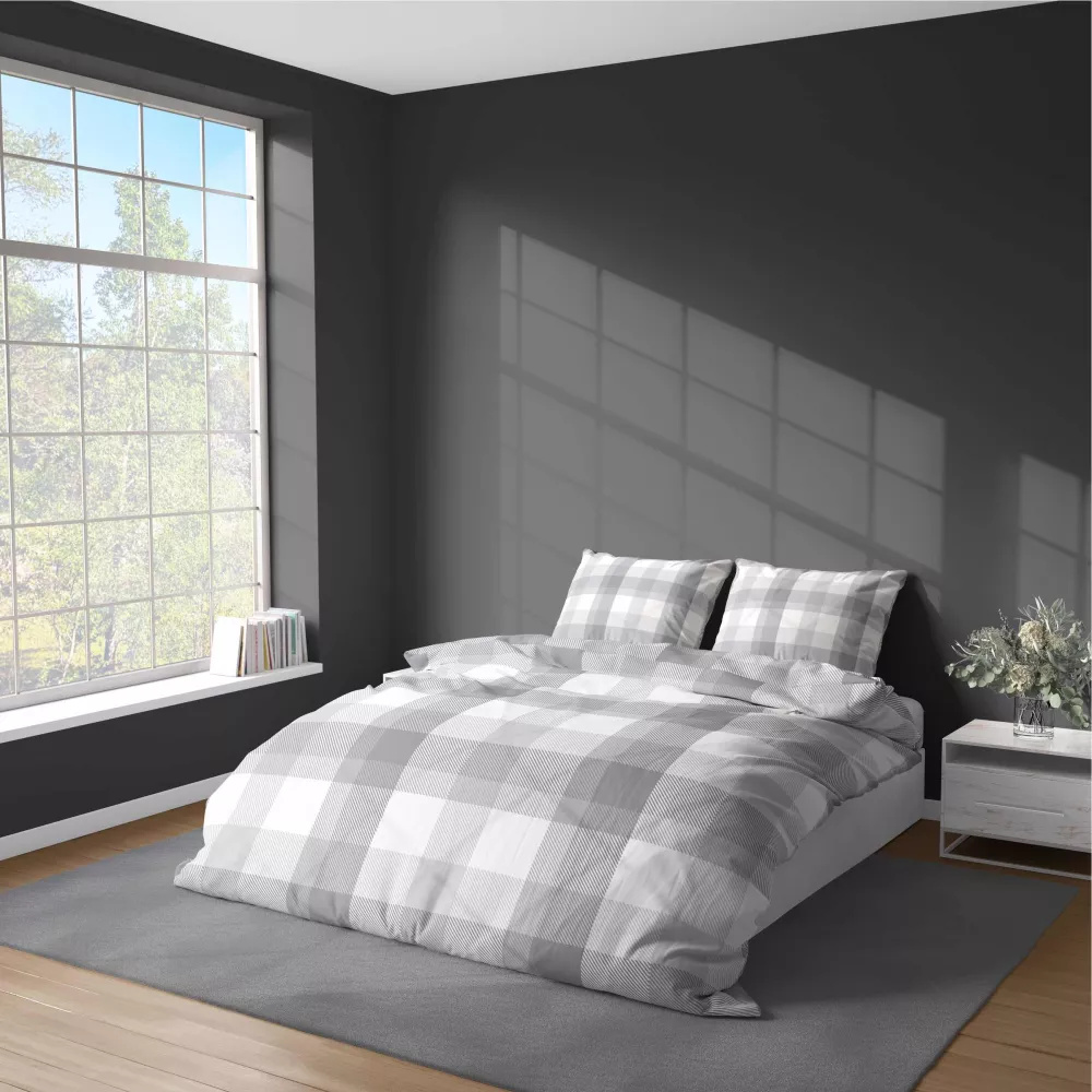 5040 A Detexpol сиво карирано спално бельо от микрофибър