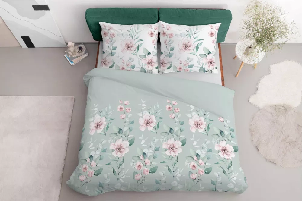 5035 A Спално бельо от микрофибър с цветя Detexpol мента