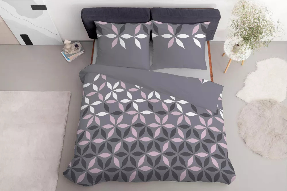 5024 A Спално бельо от микрофибър с цветя Detexpol сиво