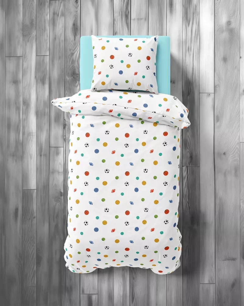 Естетичен комплект в спокойни, удобни за деца цветове. Спалното бельо е изработено от висококачествени прежди, което в съчетание с модерен дизайн и подходящо наситени цветове води до много качествен продукт. Цветовете са наситени и запазват оригиналния си цвят дори след много пранета. Интересните щампи ще се впишат перфектно във всеки интериор. Меката материя гарантира релакс и почивка по време на сън. Спално бельо с една калъфка.