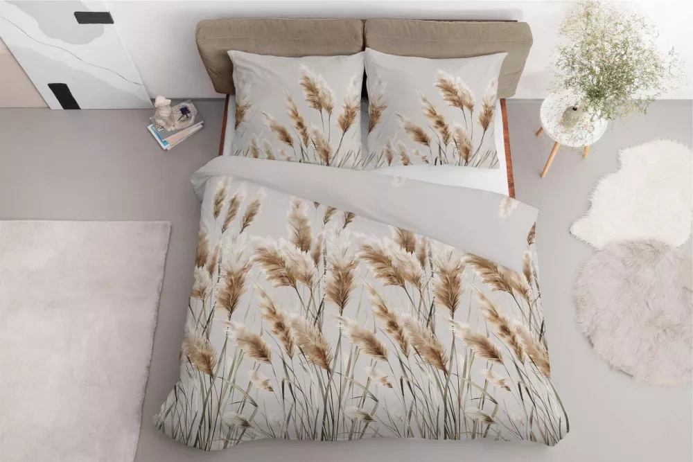 5329 B Спално бельо от сатен Pampas grasses Detexpol сиво
