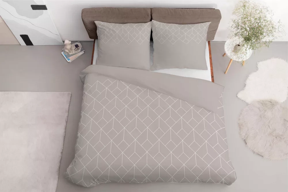5327 B Спално бельо от геометричен сатен Detexpol бежово