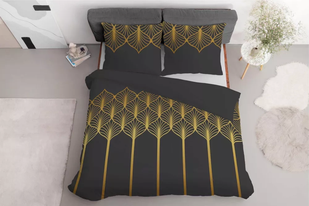 5225 A Спално бельо от сатен с геометричен мотив Detexpol черно