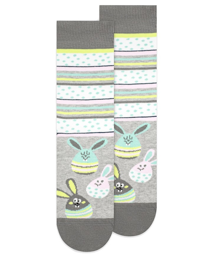 Дамски или мъжки чорапи от шарен памук. Декориран с великденски десен. Имат профилиран ток и удобен по-широк маншет.