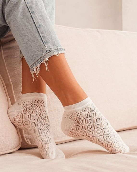 1504-002 Stopki damskie Ażurowe Milena -ecru