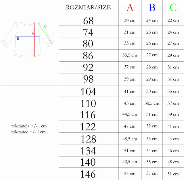 | Размер | Обиколка на гръдния кош | Обиколка на талията |