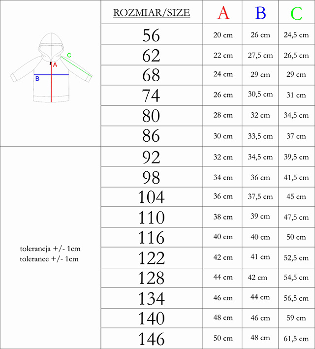 | Размер | Обиколка на гръдния кош | Обиколка на талията |