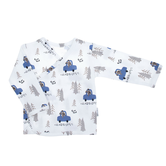 Запитване за продуктУдобна тениска за момче, изработена от памук. Материята притежава сертификат Oeko-Tex Standard 100 Trustworthy Textiles. Дрехата е с прегъваща се предна част, закопчаваща се с удобни копчета без никел.