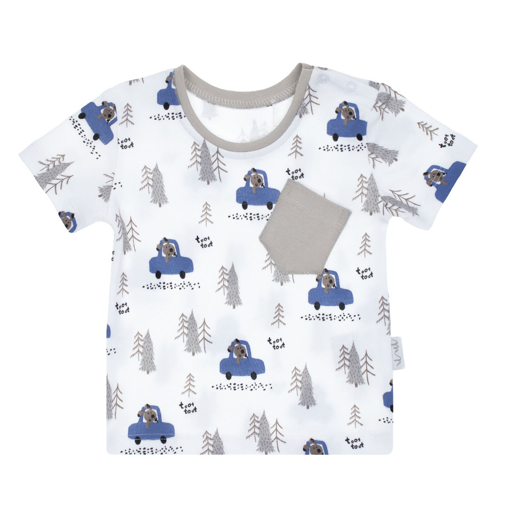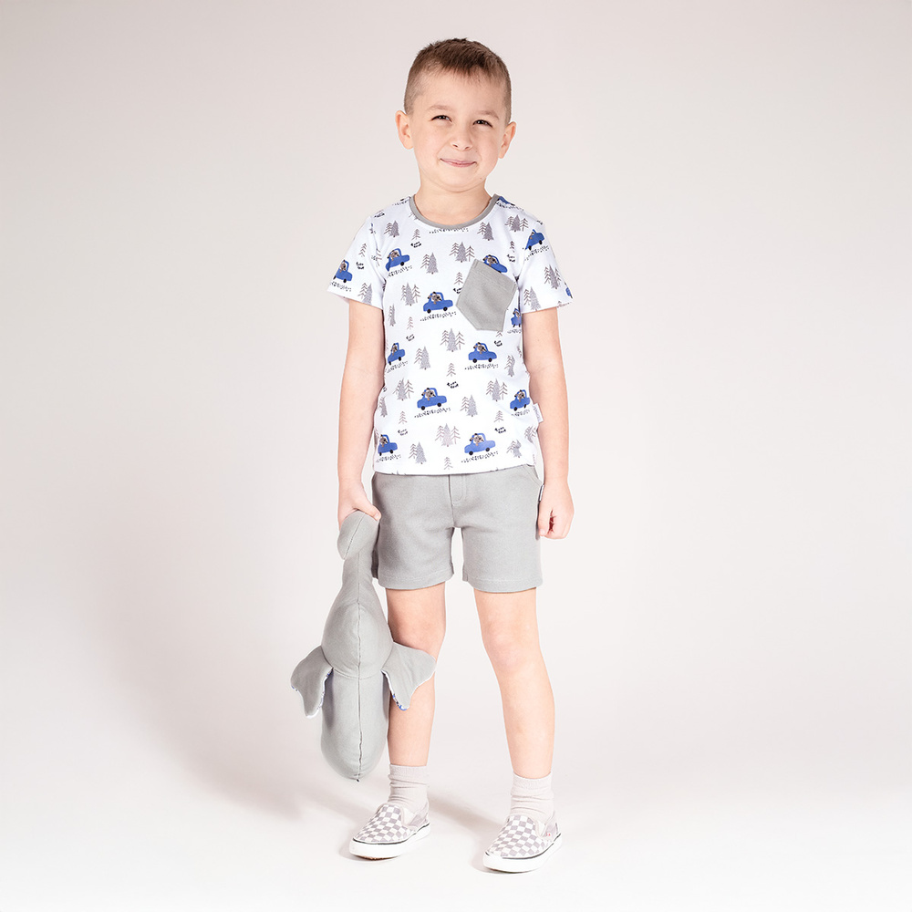 Запитване за продуктМодна блуза с къс ръкав за момче. Моделът е памучен, изработен от щампа. Материята притежава сертификат Oeko-Tex Standard 100 Trustworthy Textiles.