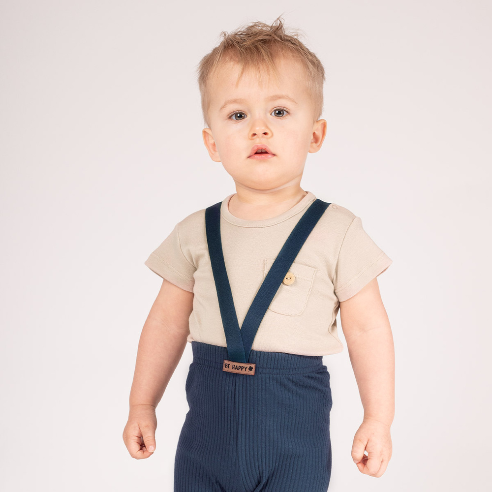 Боди с къс ръкав за момче, подходящо за топлите дни, изработено от памук. Материята притежава сертификат Oeko-Tex Standard 100 Trustworthy Textiles. Дрехата се закопчава на рамото и чатала с копчета без никел, осигуряващи комфорт при обличане.