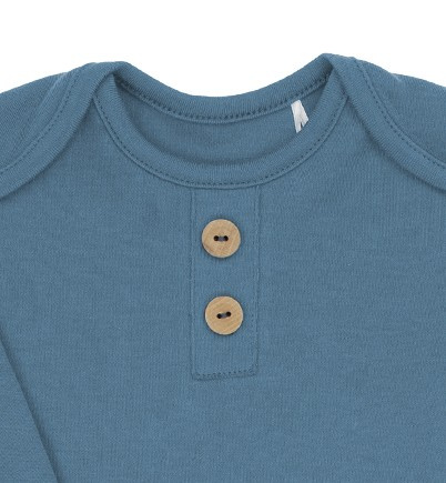 Запитване за продуктБоди с дълъг ръкав за момче, изработено от шарен памук. Материята притежава сертификат Oeko-Tex Standard 100 Trustworthy Textiles. Продуктът се закопчава на рамото и в чатала с копчета без никел, осигуряващи комфорт при обличане.