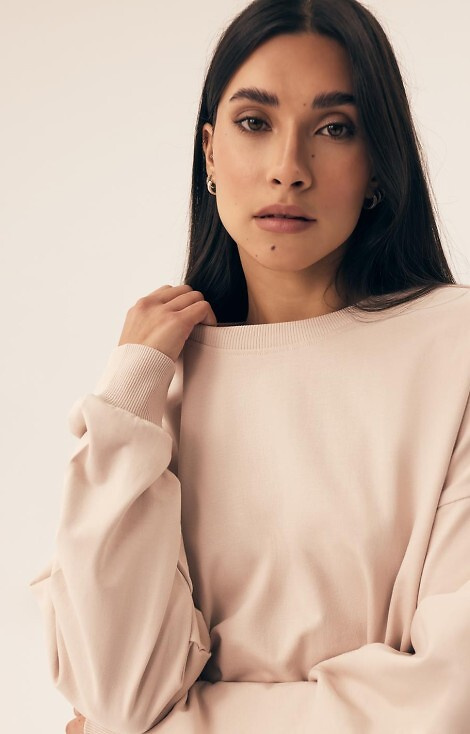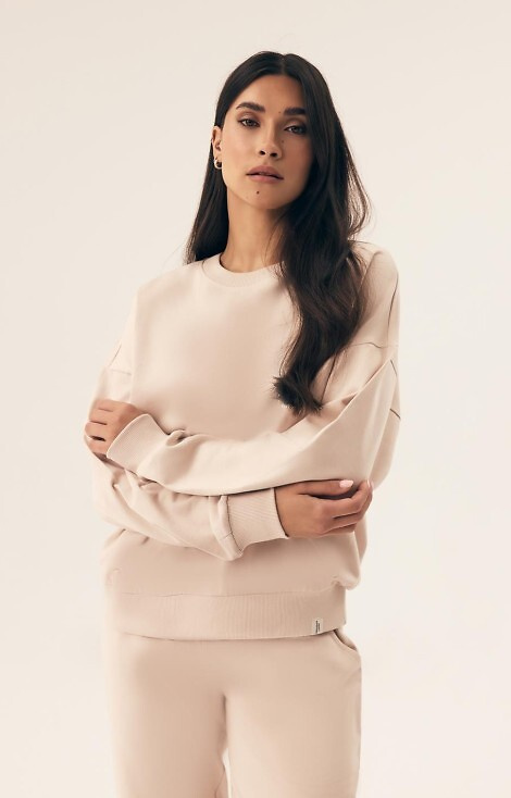 Дамска пижама/анцуг от мек гладък памук. Суичър с дълъг ръкав и рипсен маншет. Комплектът включва дълъг панталон