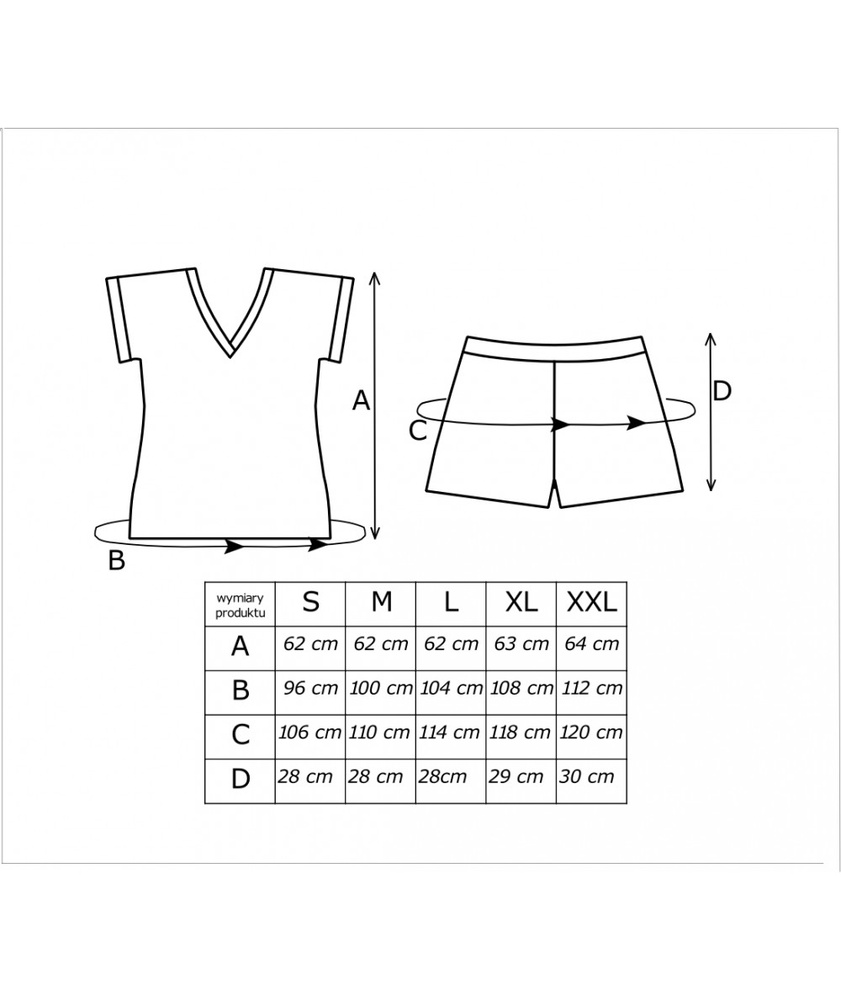 Дамска пижама от нежен памук. Тениска с къси ръкави и V-образно деколте с цветя. Съчетайте със свободни, удобни шорти. Сатенена панделка на талията.