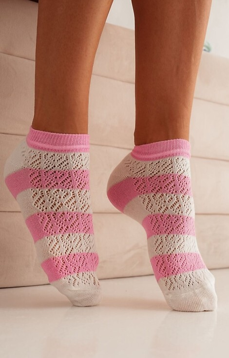1504 Раирани дамски ажурни крачета Милена бяло-розово