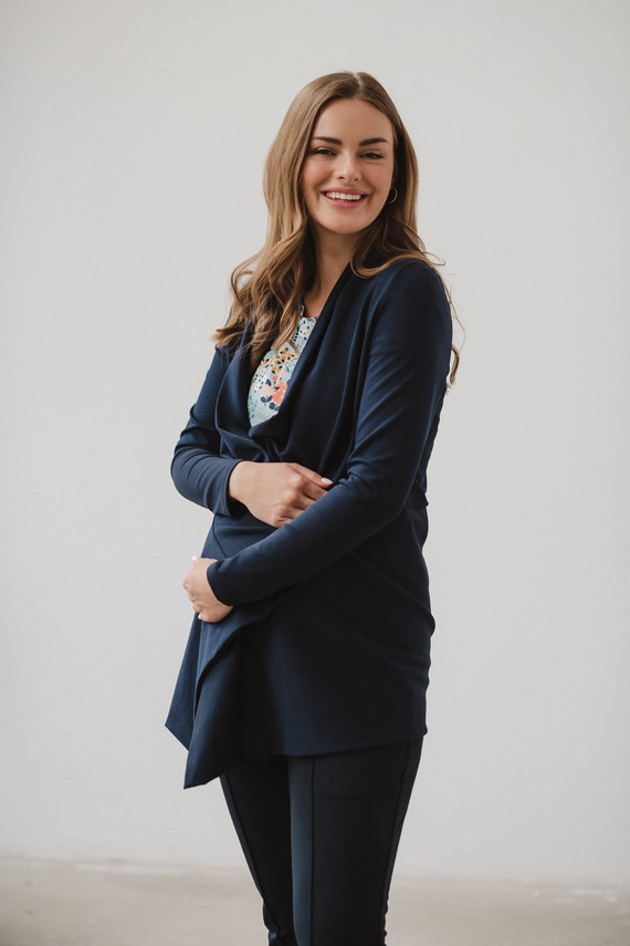 Запитване за продуктСтилна, удобна и универсална, жилетката Mama Wrap е основен елемент от гардероба на бременна и родилка. Благодарение на свободната си кройка и липсата на ципове и копчета, жилетката може да се използва и като стилно покривало за кърмене, когато имате нужда от повече дискретност или за ограничаване на количеството стимули, достигащи до бебето по време на хранене. Съчетава се перфектно с риза и елегантен панталон, добавяйки професионален, но удобен характер на цялата визия.