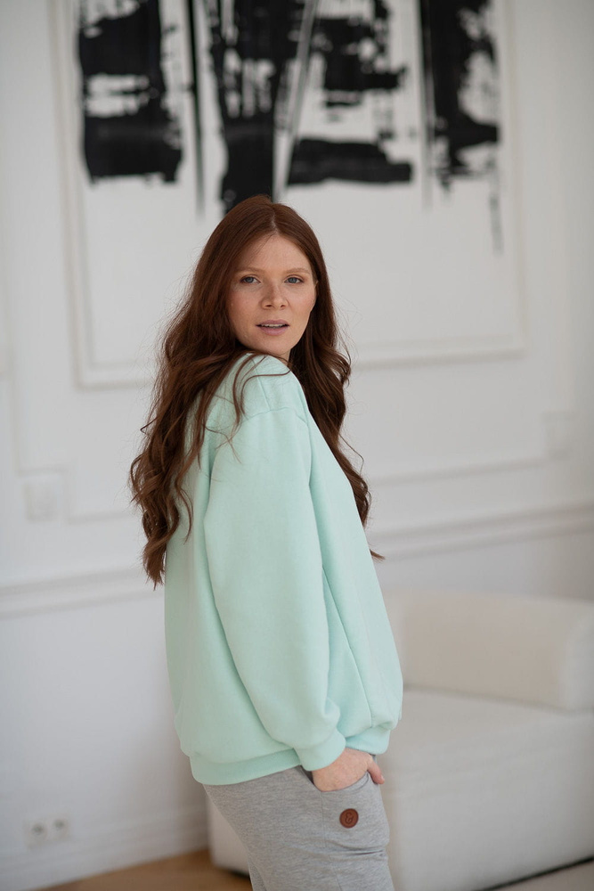 Перфектният суитшърт за бременни - неговата широка, голяма кройка е проектирана да се адаптира към променящото се тяло. Независимо дали сте в първи, втори или трети триместър, суичърът не стяга и ви осигурява максимален комфорт. Стои страхотно както с клин за бременни, така и с панталон с висока талия. След раждане ще служи като удобен суичър за кърмене и ежедневно носене. Най-висококачествените, дишащи плетива, преминали строги тестове Oeko-Tex Standard 100 - благодарение на тях суичърите за бременни и кърмачки са меки и приятни на допир както за майката, така и за бебето.