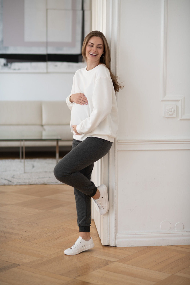 Перфектният суитшърт за бременни - неговата широка, голяма кройка е проектирана да се адаптира към променящото се тяло. Независимо дали сте в първи, втори или трети триместър, суичърът не стяга и ви осигурява максимален комфорт. Стои страхотно както с клин за бременни, така и с панталон с висока талия. След раждане ще служи като удобен суичър за кърмене и ежедневно носене. Най-висококачествените, дишащи плетива, преминали строги тестове Oeko-Tex Standard 100 - благодарение на тях суичърите за бременни и кърмачки са меки и приятни на допир както за майката, така и за бебето.