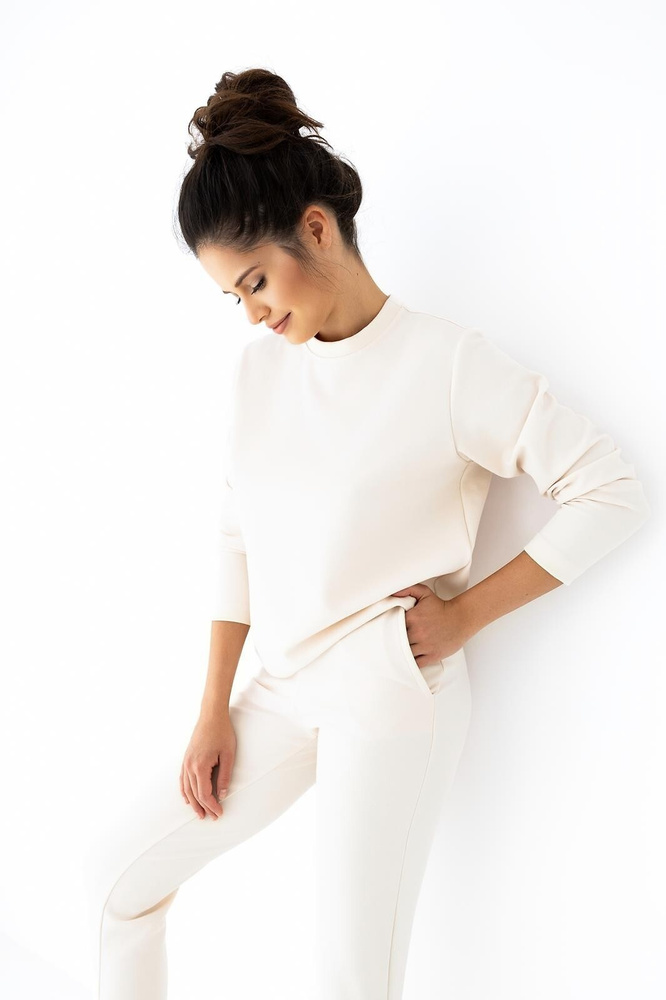 Пижама - дамски спортен костюм от висококачествен трикотаж. Гладка блуза с дълъг ръкав. Колан и маншети с оребрени краища. Дълги, гладки панталони с джобове, завършващи с подгънат маншет .