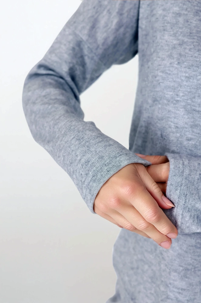 Много удобен дамски комплект от приятна материя. Блуза с дълъг ръкав, V-образно деколте. Перфектен като пижама и домашно облекло