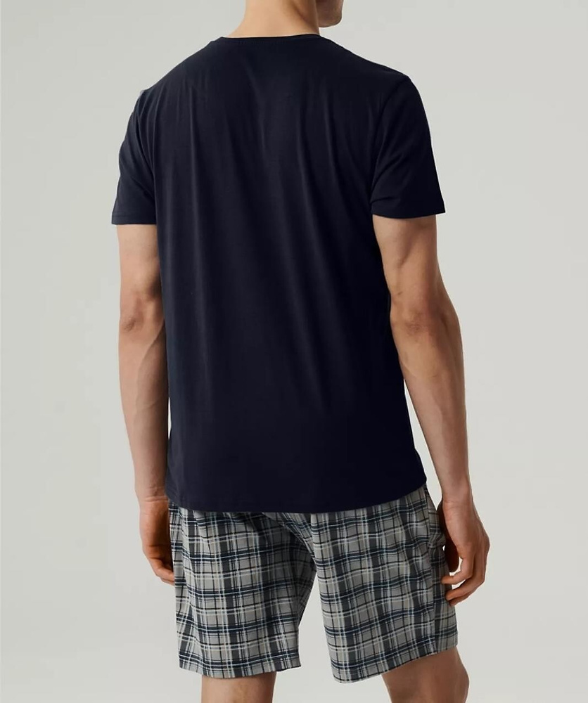 NMP-380 Мъжка пижама с къс ръкав Atlantic - морско синьо и сиво