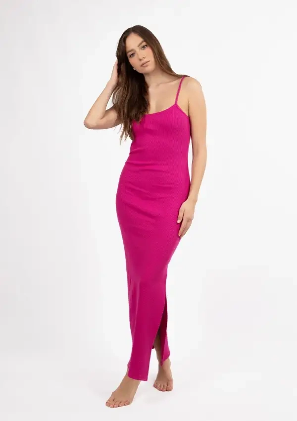 Роклята се отличава с голяма изрезка отстрани, която фино открива крака, придавайки сексапил на целия стайлинг. Деликатни презрамки и вталена кройка перфектно подчертават фигурата, следвайки всяко движение и подчертавайки предимствата на жената.Изработена отвисоко качествои оребрена материя, роклята е не само елегантна, но и... удобно. Оребрената текстура добавя финес и в същото време подчертава фигурите, създавайки ефект на отслабване. Има райе мазнини, така че няма страх, че материалът ще бъде прозрачен.