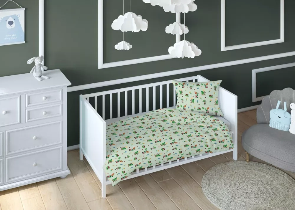 Естетичен комплект в спокойни, удобни за деца цветове. Спалното бельо е изработено от висококачествени прежди, което в съчетание с модерен дизайн и подходящо наситени цветове води до много качествен продукт. Цветовете са наситени и запазват оригиналния си цвят дори след много пранета. Интересните щампи ще се впишат перфектно във всеки интериор. Меката материя гарантира релакс и почивка по време на сън.