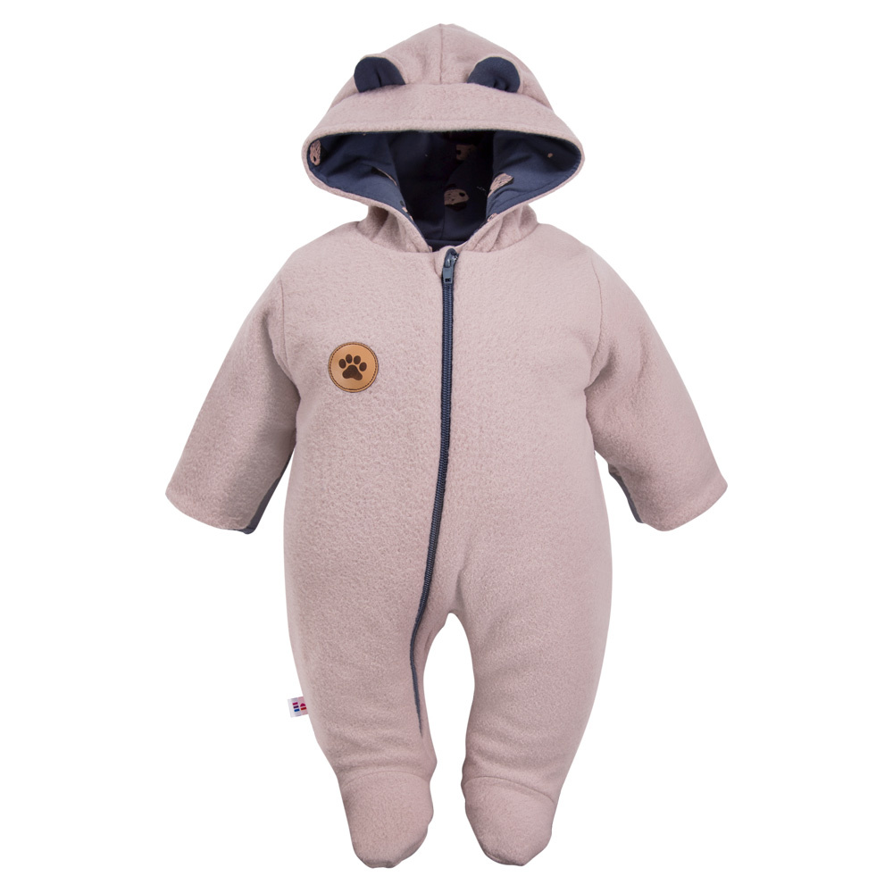 Бебешки гащеризон с качулка от топъл полар. Подплатата на гащерината е от 100% памук. Гащеризон с качулка ще бъде идеален за излизане от болницата през студените месеци. Тя е задължителен елемент в бельото за деца, родени през зимата и есента.