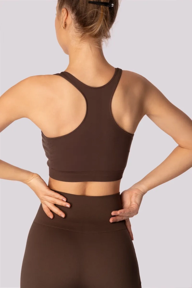 вътрешен, дишащ с push ефект и гладък, непрозрачен външен слой. Спортни, удобни презрамки с кръстосана форма увеличават свободата на движение. Ще работи добре както по време на тренировка, така и като елемент от ежедневния стил. Много е удобен и комфортен, като осигурява нежна опора на бюста. Защото съчетава модерни технически решения с модерен, спортен стил.