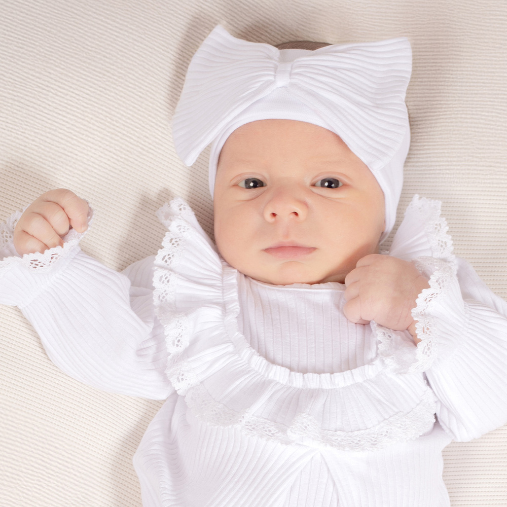 Бяла лента за глава за момичета. Има декоративна голяма панделка отпред. Моделът лента за глава е идеален както за малки, така и за по-големи момичета. Тя ще бъде идеалното допълнение към различни стилове. Той ще предпази ушите на вашето дете от вятър и студ. Материята притежава сертификат Oeko-Tex Standard 100 Trustworthy Textiles.