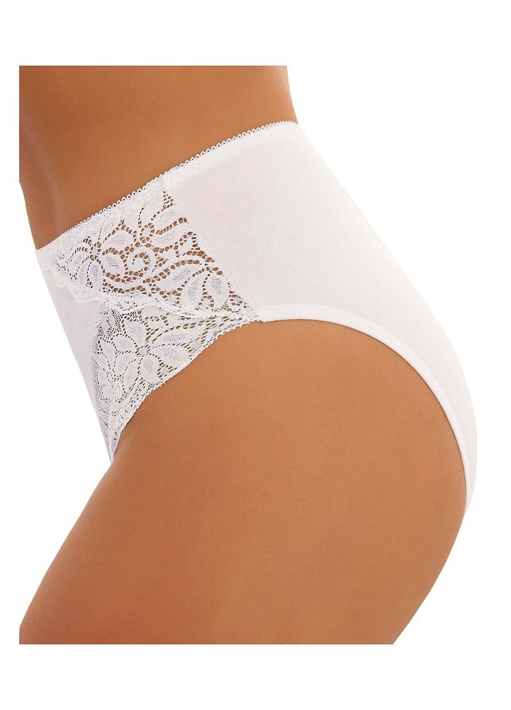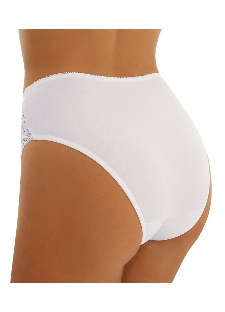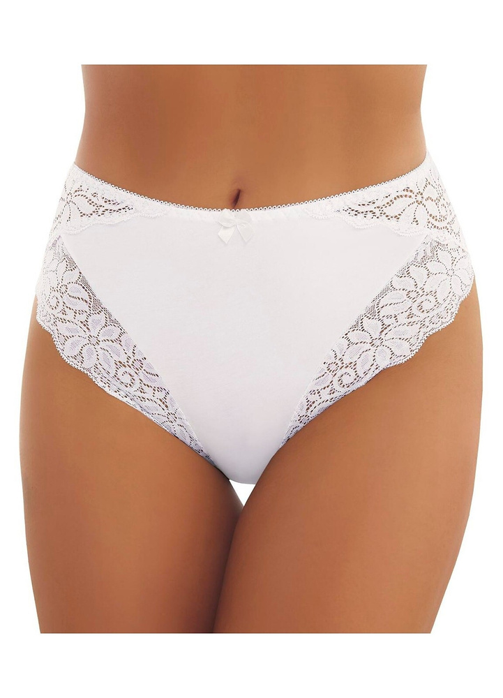 Затворени, високи дамски слипове. Изработена от гладък памук в комбинация с ажурна дантела